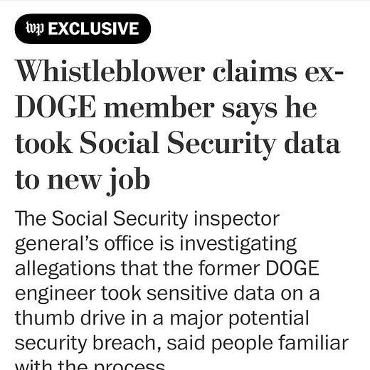 ³ The investigation is reported by the Washington Post. The engineer allegedly sought to transfer Social Security data to his personal computer for “sanitizing” before uploading it to the systems of a private company. A colleague who refused to assist cited legal concerns.